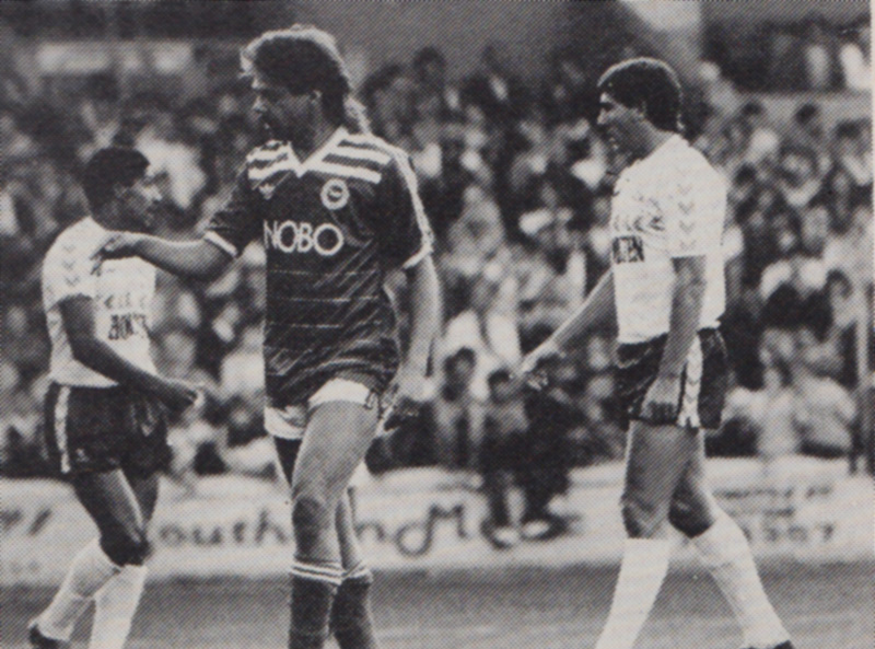 And here’s the mid-1980s adidas kit with NOBO sponsor, as worn by the main goalgetter in that side… um, Peter Ward?