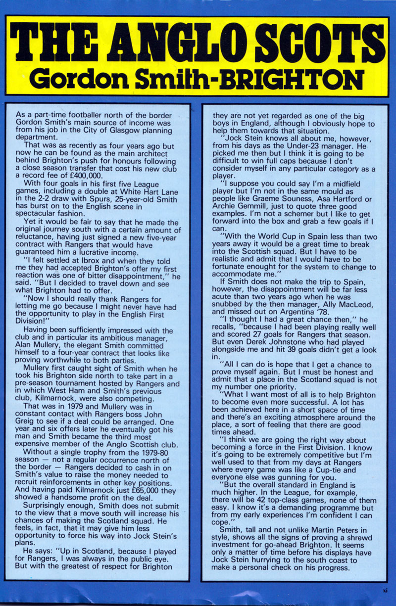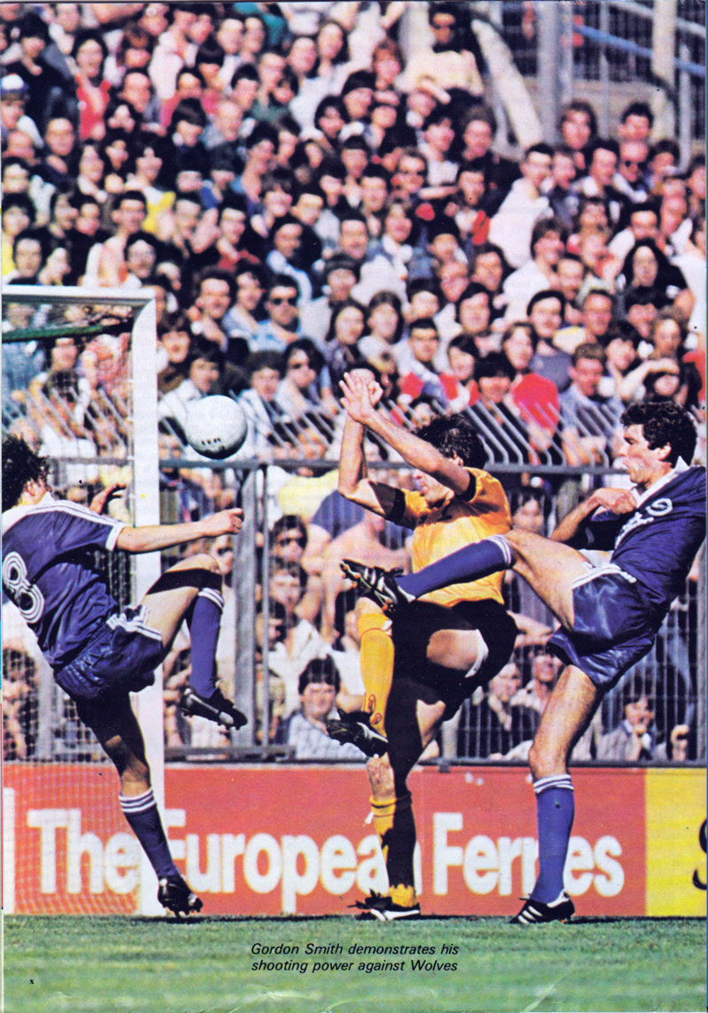 Here you can see Frank Worthington in a Brighton shirt, skipping past a Manchester City defender in the 0-0 draw in November 1984.