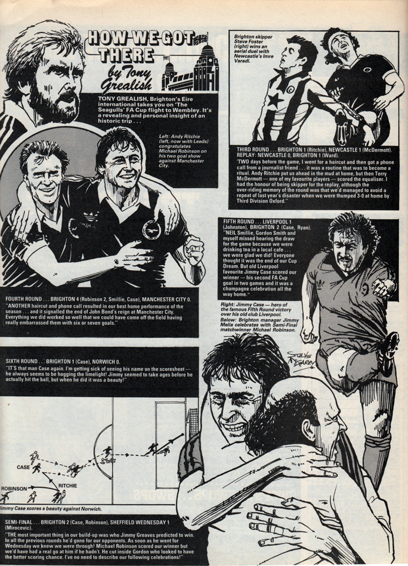 Here’s Steve Foster’s high challenge that created the opening for Tony Grealish to get Albion’s first goal. So high, the cameraman almost missed it.