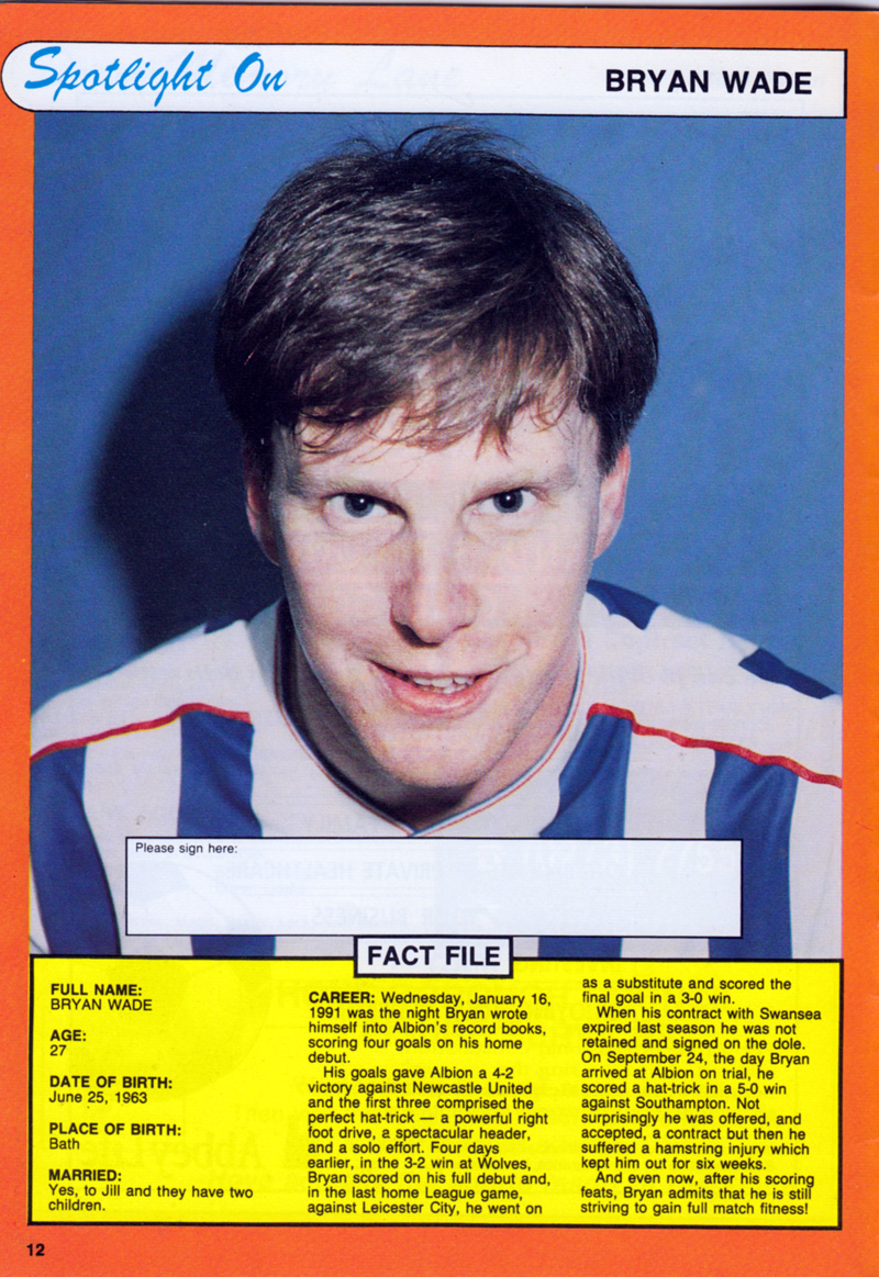 Pint-sized striker Bryan Wade is profiled in the Brighton v Oldham programme from 1990/91: