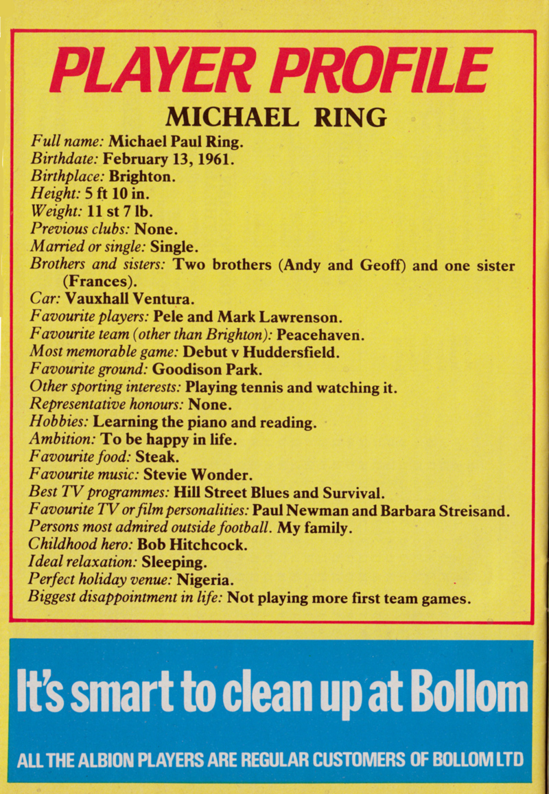 “Last season,” he reflects, “was the first time that Brighton had managed to keep their place in a higher division for more than one season. [not actually true. Also achieved after the 1957/58 promotion season]