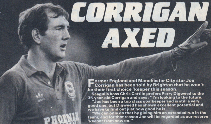 Memories from Seagulls’ supporters on Corrigan’s year on the south coast tend to be very positive. Most memorably, the experienced shot-stopper performed admirably in front of the ‘Big Match Live’ cameras in Brighton’s famous 2-0 victory over Liverpool in the FA Cup in january 1984. Disappointingly, the keeper himself is far less positive about his experience with Albion, in his autobiography ‘Big Joe’: