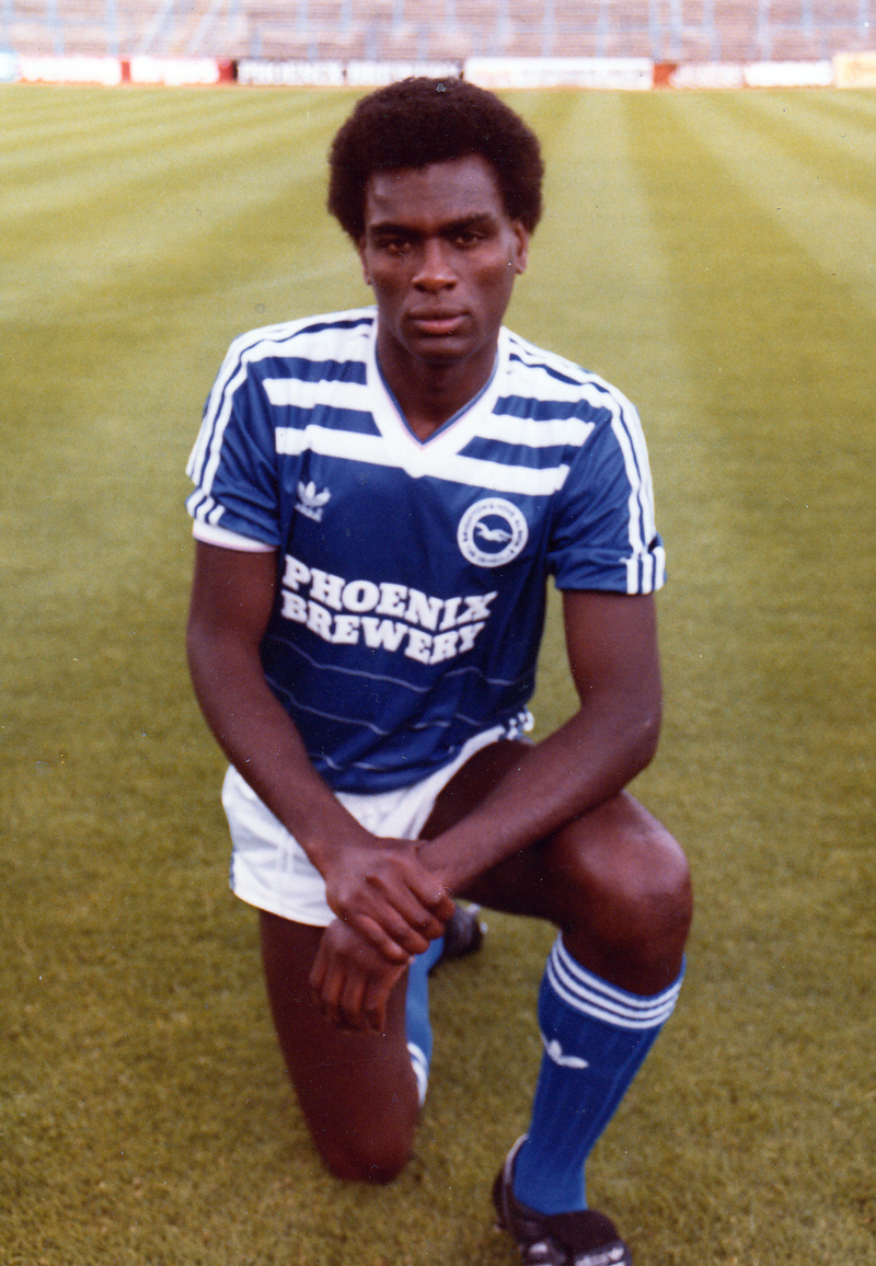 Here is mascot Gavin McLean, then 12 years old, posing with new Brighton striker Justin Fashanu on the opening day of the 1985/86 season, before the 2-2 draw with Grimsby Town at the Goldstone in August:
