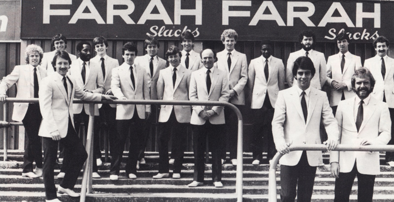 A truly kitsch classic. The first team in 1983 are kitted out in some rather dapper new blazers and slacks from the firm with its UK base in Gatwick.
