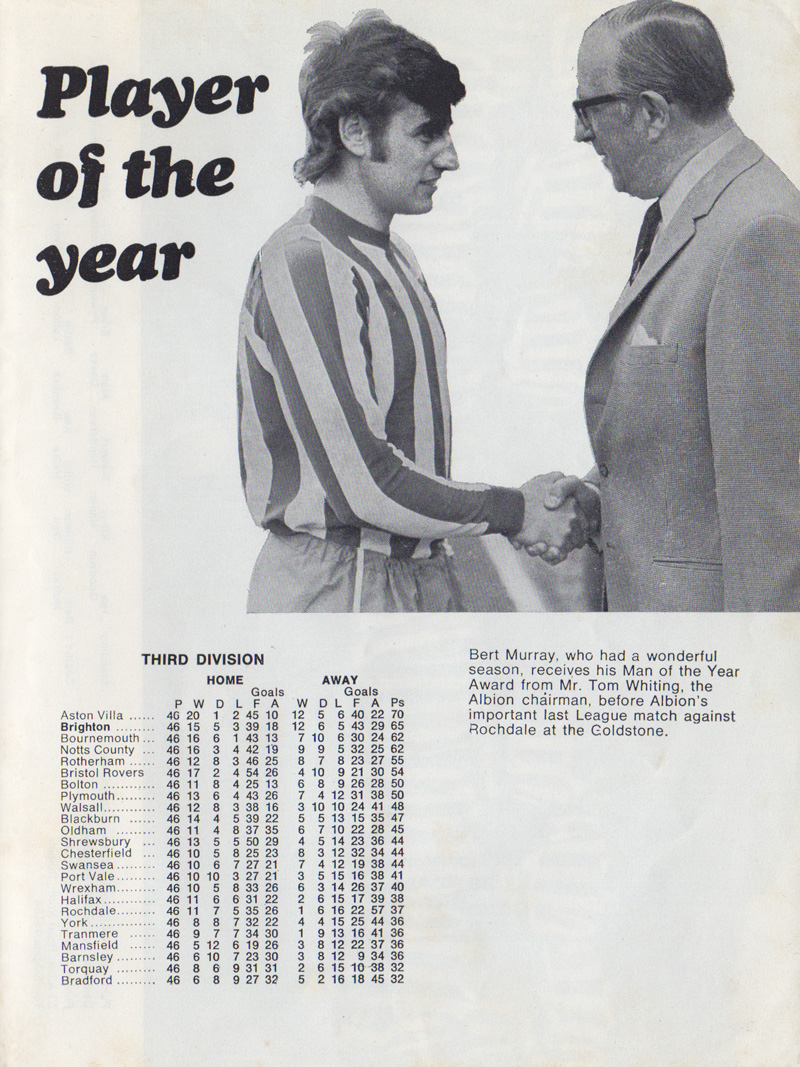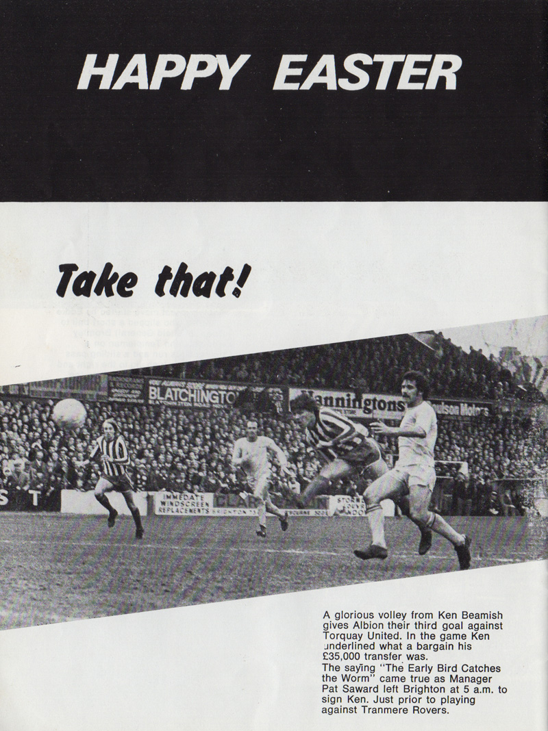 With Brighton going well in Division Three, the level of interest in the floodlit match was such that the Evening Argus produced a four page A3 colour supplement as a preview to the game: