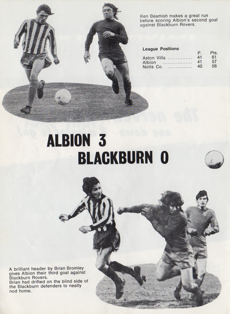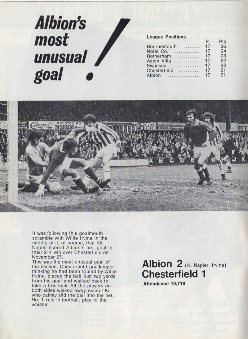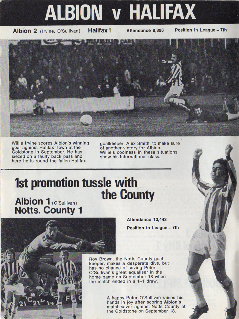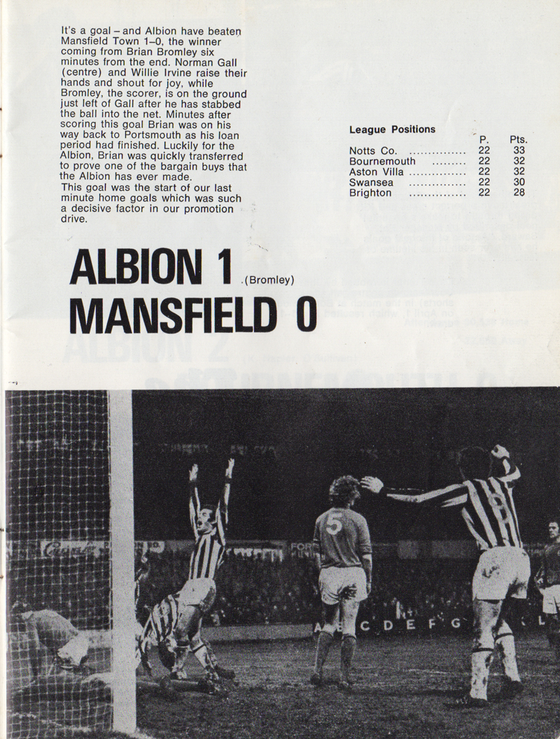 On nineteen minutes, Albion took the lead when Kit Napier’s inswinging corner was missed by Wolves keeper Parker, who seemed more worried by big Alex Dawson. He seemed to push Dawson, which may have warranted a penalty, but Allan Gilliver showed his goal touch to squeeze the ball home at the far post.