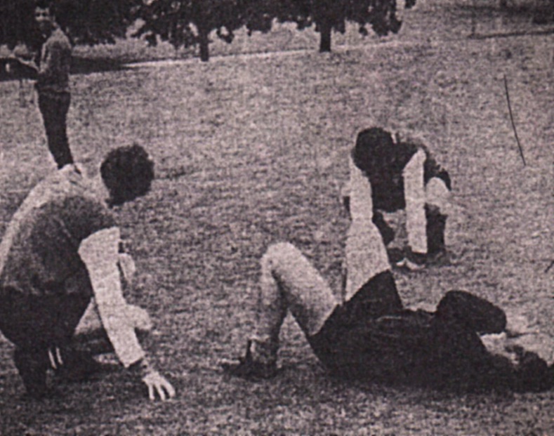 Rather generously, the back page was mainly devoted to a colour photo of the visitors: