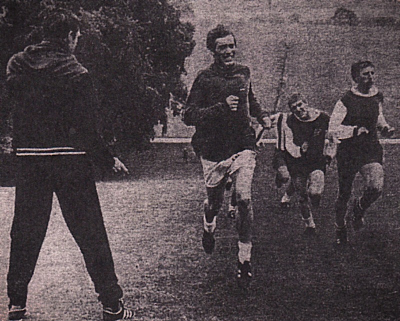 Back row: Mike Yaxley (coach), Terry Stanley, George Dalton, Barrie Wright, Bobby Smith, Mike Everitt, Dave Armstrong, Ken Blackburn, Joe Wilson (trainer);