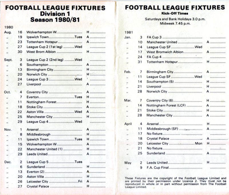 When the fixtures were published for 1980/81, this vivid and confident fixture card design must have seemed apt: