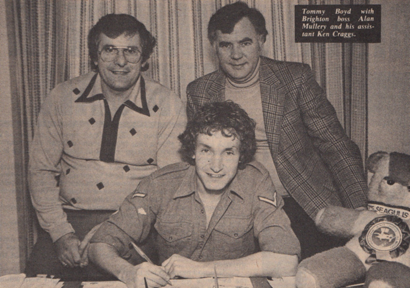 However, in the 44th minute a well worked move down the right culminated in a neat cross which was cracked in by lan Baird – 2-0 to Brighton! The home fans managed a rousing chorus of: ‘There’s only one Stuart Storer,’ and we weren’t about to argue.
