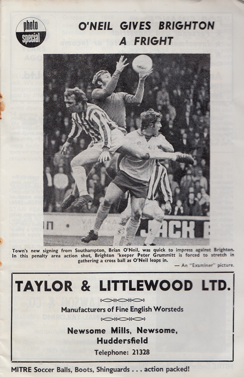 Paired with blue shorts, you can see it worn in the Huddersfield v Brighton match in October 1974: